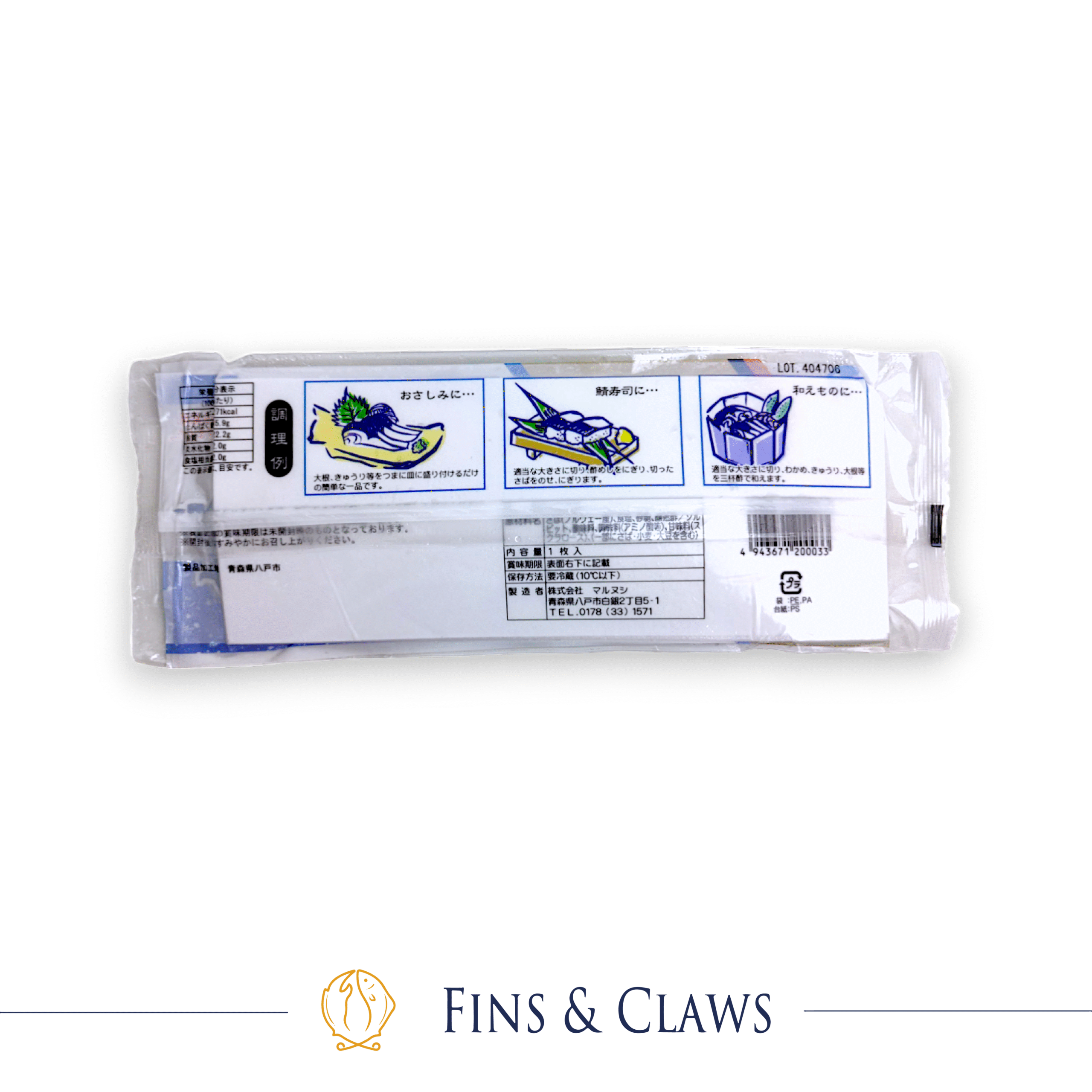 Shime Saba, or cured mackerel, is a classic Japanese delicacy prepared by lightly curing fresh mackerel in vinegar and salt to enhance its flavor while preserving its freshness. With its rich, oily flesh, bright umami taste, and slightly tangy finish, this sashimi-grade specialty is perfect for sushi, sashimi platters, or pressed sushi (saba oshizushi). Air-flown from Japan and packed in 100g portions, it’s a must-have for authentic Japanese dining at home.